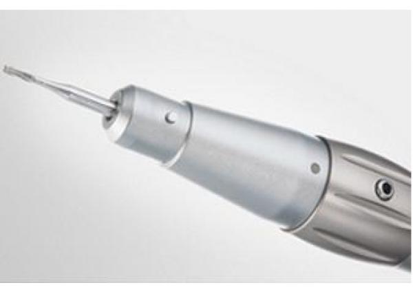 Прямые микромоторные наконечники приводятся в движение электромотором или пневмомотором, имеют те же скоростные показатели, что и угловые, но за счет конструктивных особенностей позволяют оказывать на режущий инструмент большие усилия (норматив давления на дентин для стального бора при скорости вращения 18 000 об/мин - 500 г, а для карбидовольфрамового бора при 450 000 об/мин - 2 г).